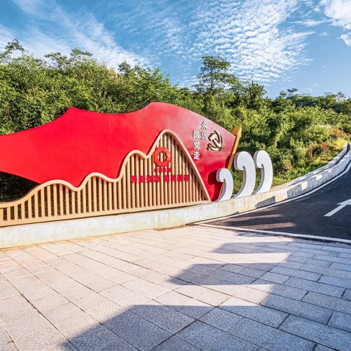 不仅修复生态,更要美化青山,这是大家的共识,在保有原生自然生态的同时,这里进行了公园式改造。“绿水本无忧,因风而皱面”,厂区里水塘的荡漾,摇曳着两侧的青山;望远亭与复古城墙遥相辉映,面面红旗迎风招展;芳草萋萋,林木葱茏的景观步道能眺望整个园区,红军抗日时曾作为据点的山洞被保留修葺成观景平台;“矿业史”、“中国梦”等文化景观打造了文化阵地。