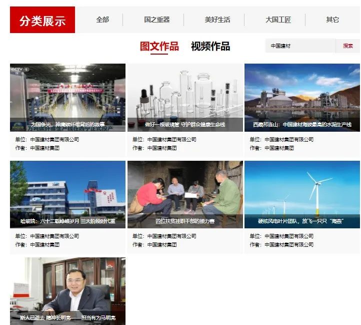 目前,以上作品正在中央企业优秀故事官网集中展示,点击“阅读原文”,即可进入官方网站并搜索中国建材,欢迎大家一起为优秀故事点赞分享!