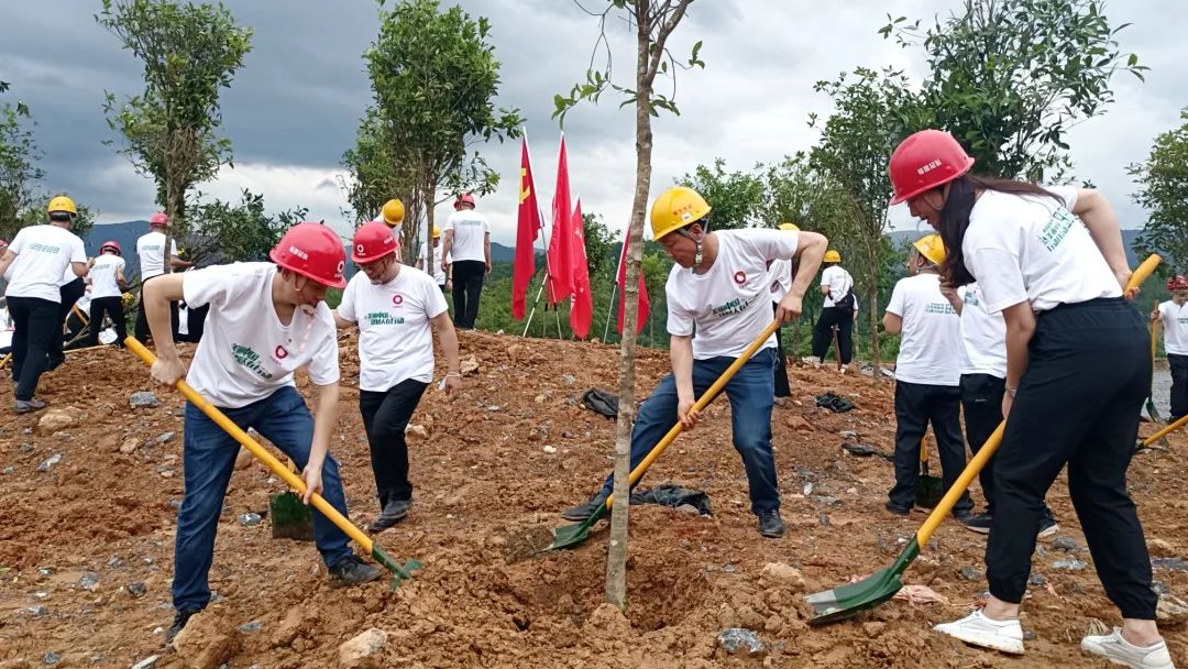 成功登顶后,双方活动人员在矿山上共同开展植树活动,寄托两家单位友谊常驻、集团基业常青的祝愿。